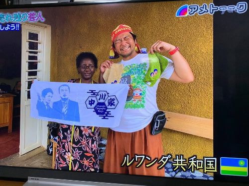 中川家さんの手ぬぐいはルワンダの工房へプレゼント。