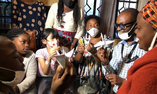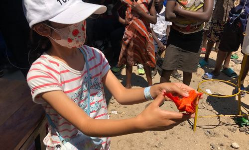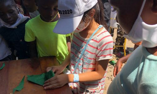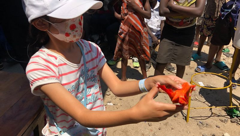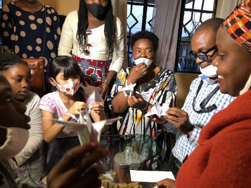 すぐさま中村さんにそのことを伝えると「最高です!」のお言葉をいただき、現地へマスクを持って行ったときに折り鶴の折り方も教えるとのことでした。その言葉通り、中村さんは弊社並びに賛同する方々からのマスクを手に、渡航されました。そしてこのマスク活動はまだ続けるとのことです。