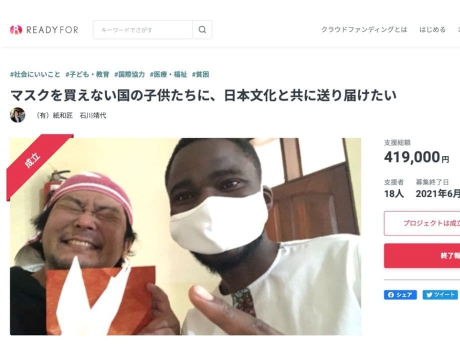 どうか皆様のお力をお借りし、マスクを買えない国の子供たちにマスクと共に日本文化を届けるプロジェクトを成功にお導きください。