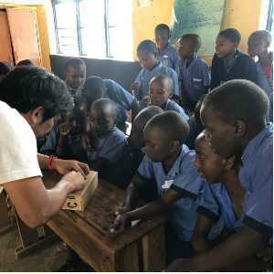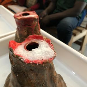 雲仙岳災害記念館で行っている授業をコンゴで再現。火山の仕組みを学びます。