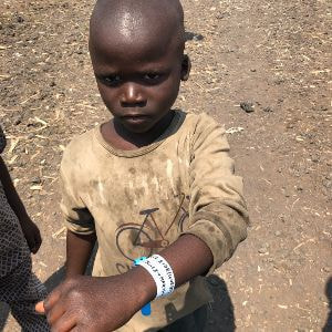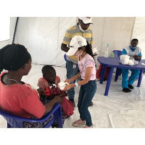 難民キャンプに診療に来ている難病の女の子と交流する様子