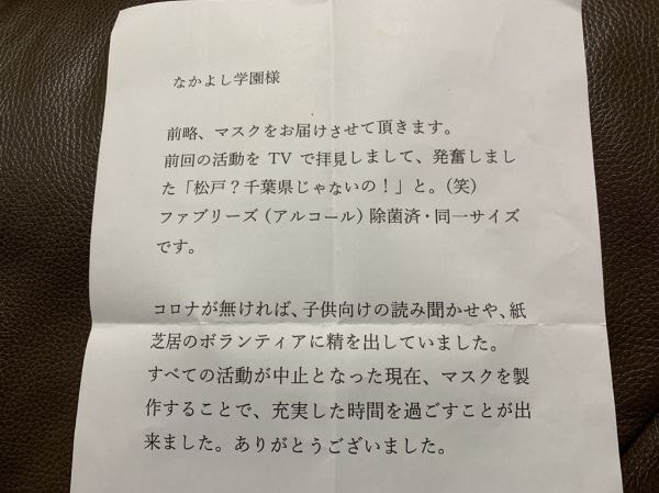 創業五十年の資源リサイクル企業「萩原商店」からマスクをご寄付いただきました!