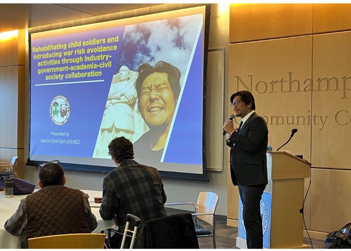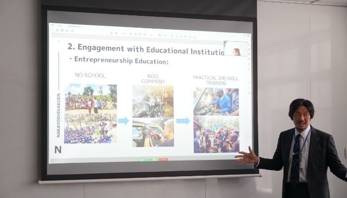 Le discours du président Yuichi Nakamura s'est concentré sur le thème "Collaborative Strategies for Sustainable Development in Conflict Zones" (Stratégies collaboratives pour un développement durable dans les zones de conflit). Nakayoshi Gakuen a collaboré avec de nombreuses entreprises japonaises et a mené des activités dans des régions en conflit et appauvries. En analysant ces efforts, le président Nakamura a présenté un nouveau modèle d'ONG au monde.
