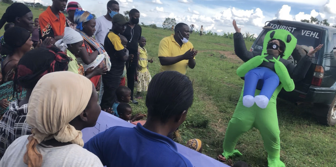 Au camp de réfugiés en Ouganda, nous avons donné un cours sur le thème « Qu'est-ce qu'un virus covid19 ? Le principal Nakamura lui-même s'est déguisé en virus covid19 et a enseigné comment prévenir le virus. La classe dans laquelle les Japonais venus pour la première fois se sont soudainement transformés en virus a été une série de surprises, et tout le monde dans le camp était plein de sourires. a series of surprises, and everyone in the camp was full of smiles.