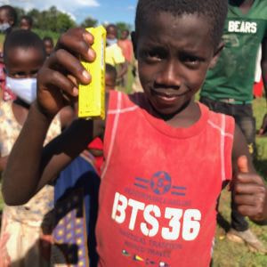 Avril 2021. Le projet Nakayoshi Gakuen a commencé ses activités en Ouganda alors que toutes les organisations internationales ont arrêté leurs activités en raison de la catastrophe de Covid19. Le principal Nakamura a dirigé un cours pour enseigner les "sentiments" en utilisant le "Masque NON STYLE Inoue" utilisé dans le cours de collaboration avec le célèbre programme télévisé japonais Ame Talk. Nous aimions enseigner la morale d'être heureux quand quelqu'un dit de bons mots à l'autre personne et triste quand quelqu'un dit de mauvais mots.