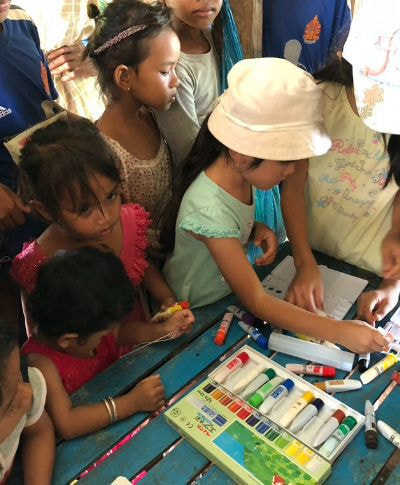 カンボジアには筆記用具が十分に無い地域がたくさんあります。そのような地域では絵の具を使って絵を描くことは夢のまた夢になっています。
